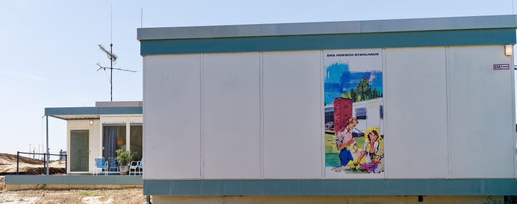 Das Hoesch-Stahlhaus L141 von 1966 steht auf dem Museumsgelände im Dortmunder Norden und zeigt eine neue Ausstellung: über das Werkswohnen, die Forschungsarbeit der Firma Hoesch und über die Geschichte der Stahlhäuser der Moderne.