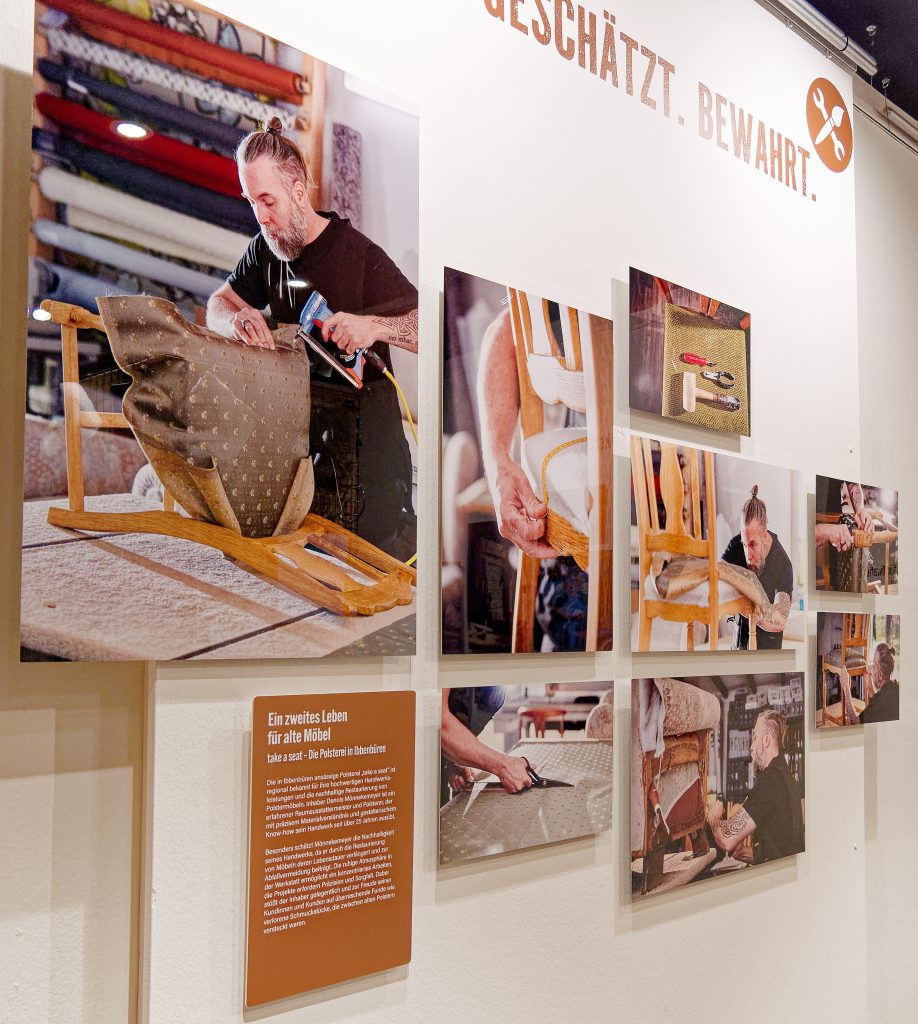 „Würde. Wohlbefinden. Halt.” zeigt Handwerk mit sozialer Dimension. Hier begegnen den Besuchenden Betriebe, die weit über das rein Funktionale hinaus wirken: Sie geben Menschen in herausfordernden Lebenssituationen neue Perspektiven, fördern Selbstbestimmung und leisten durch ihre Arbeit einen wertvollen Beitrag zum gesellschaftlichen Zusammenhalt.