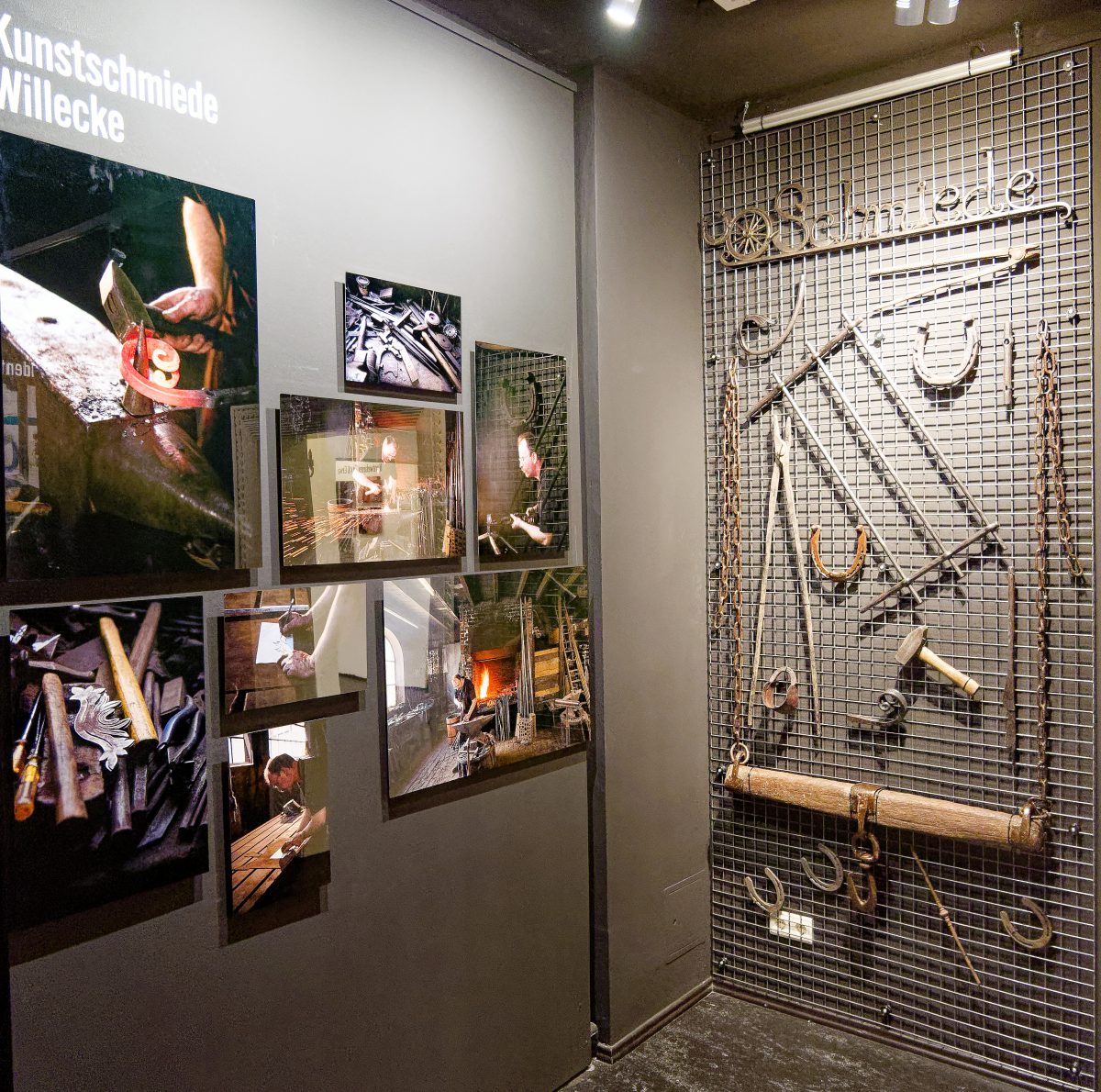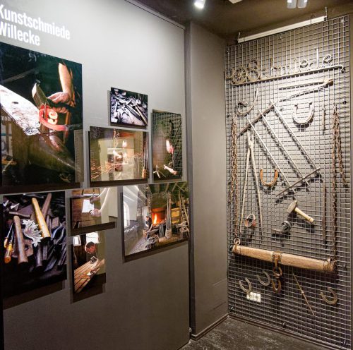 Besucherinnen und Besucher erwartet im Sonderausstellungsgebäude des Freilichtmuseums eine multisensorische Ausstellung, in der das Anfassen ausdrücklich erlaubt ist. Objektwände laden zum Tasten ein Medienstationen vermitteln zusätzliche Inhalte und eine 360°-Raumprojektion lässt Werkstätten atmosphärisch erlebbar werden.