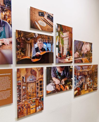 Herzstück der Ausstellung sind die Fotografien von Tuula Kainulainen, die über einen Zeitraum von fast zweieinhalb Jahren rund 24 ausgewählte Handwerksbetriebe in der Region besucht und dokumentiert hat – mit ihrer Kamera, aber auch mit großer Nähe, Aufmerksamkeit und Respekt gegenüber den porträtierten Menschen. Das Ergebnis: Eine Ausstellung mit über 170 eindrucksvollen Fotografien, eingebettet in vier Themenbereiche, begleitet von Interviewsequenzen, interaktiven Mitmachaktionen und einer großflächigen immersiven 360°-Projektion.