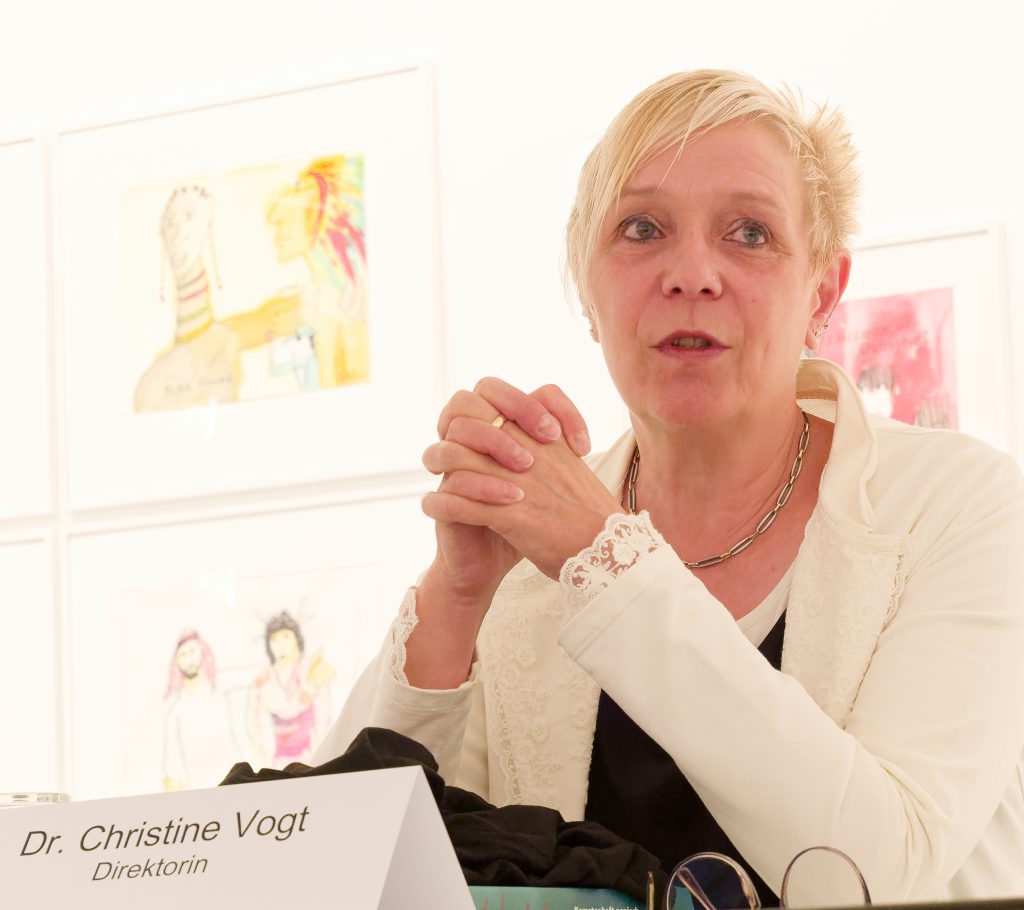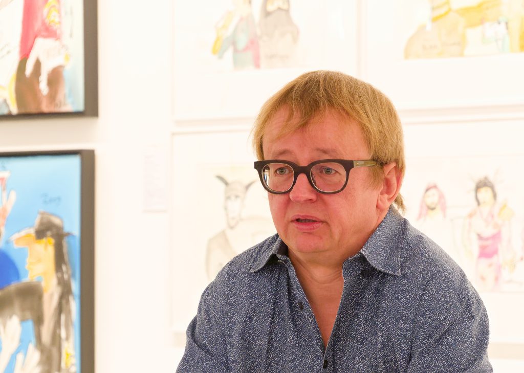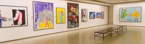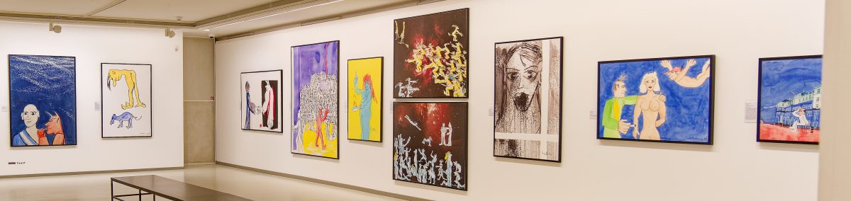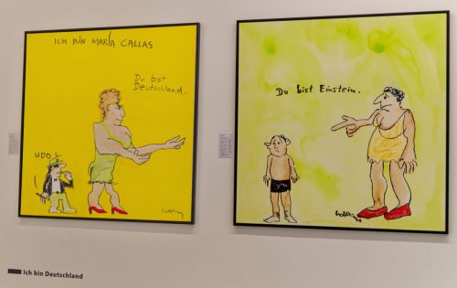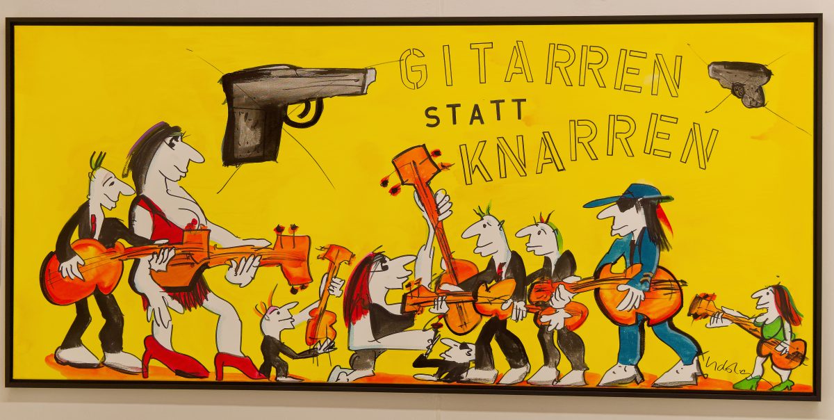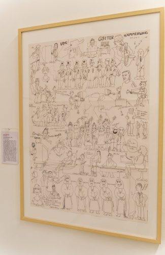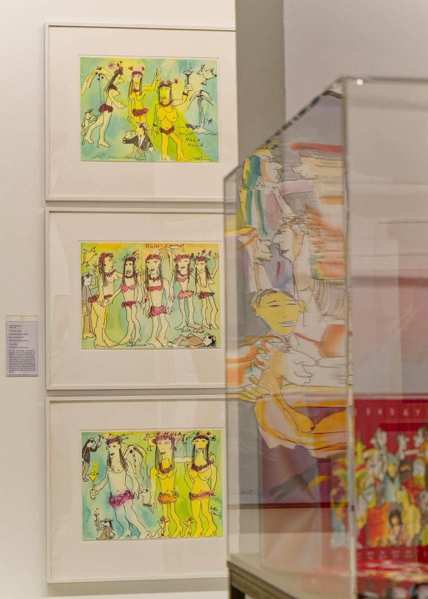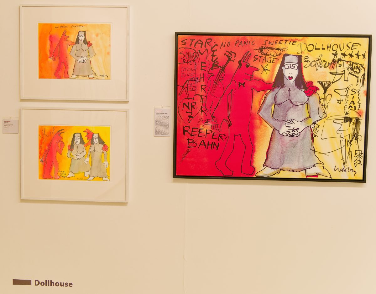 Das geniale Multitalent, das als Sänger Musikgeschichte geschrieben und als Maler und Zeichner ein eigenwilliges, buntes, an Comic und Cartoon orientiertes CEuvre geschaffen hat, wird in dieser sehr umfangreichen Ausstellung mit all seinen Facetten vorgestellt. Ernsthafte Themen wie der Zyklus zu Goethes Hauptwerk Faust, die Auseinandersetzung mit den biblischen Geboten oder seine klare politische Haltung im Kampf gegen rechte Gesinnung — mit den Pimmelköppen wurde eine eigene Spezies geschaffen — stehen neben den munteren nackten Akten oder der losschippernden Andrea Doria.