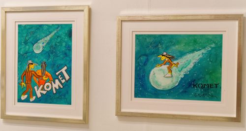Das Universalgenie Udo Lindenberg hat seit Mitte der 1990er Jahre ein umfangreiches malerisches Werk mit großem Wiedererkennungswert geschaffen. Die Menschenfamilie tummelt sich lebens- und liebeslustig im friedlichen Miteinander. Astronaut und Vampir wandern ebenso auf die Leinwand wie Detektiv Coolman, Elli Pyrelli, Rudi Ratlos, Familie Kabeljau oder die Klavierlehrerin. Und über allem hebt der Komet ab.