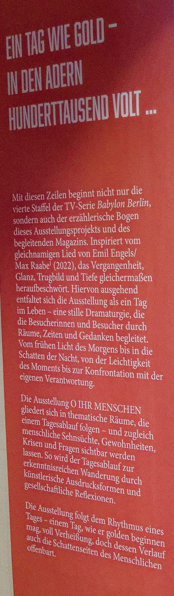 Die Gruppenausstellung O IHR MENSCHEN – Neusachlicher Blick in Fotografie, Druck und Zeichnung, benannt nach ebenjenem Gedichtfragment von Alfred Bauer Saar (Saarbrücken 1896–1973 Stuttgart), nimmt diesen Gedanken auf und entfaltet ihn entlang von Werken der Neuen Sachlichkeit – einer Kunstrichtung, die wie kaum eine andere den Menschen im Spiegel der Welt und die Welt im Spiegel des Menschen porträtiert hat.