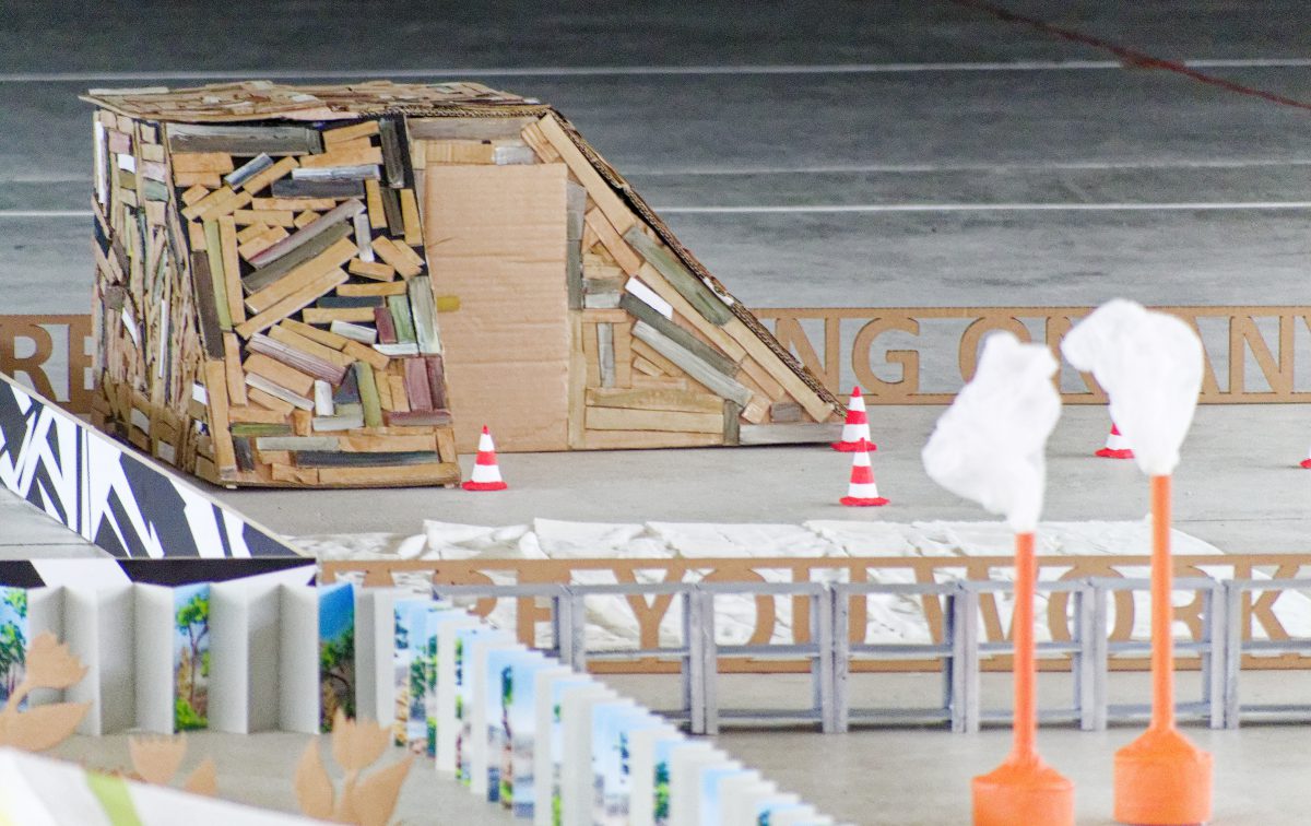 Für 2025 markiert ein Holzgerüst-Zaun die Auseinandersetzung der Künstler*innen mit „Human Work“.