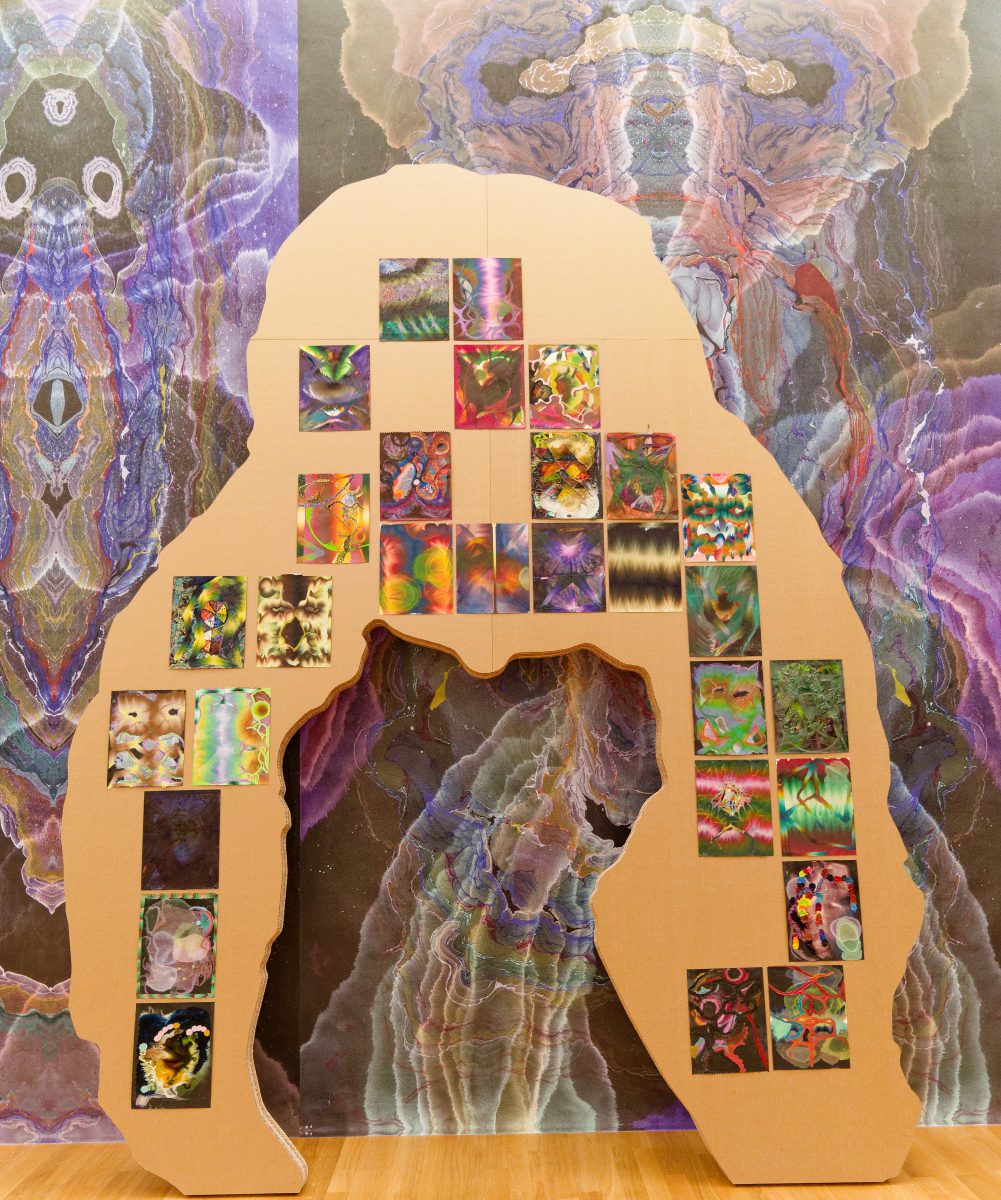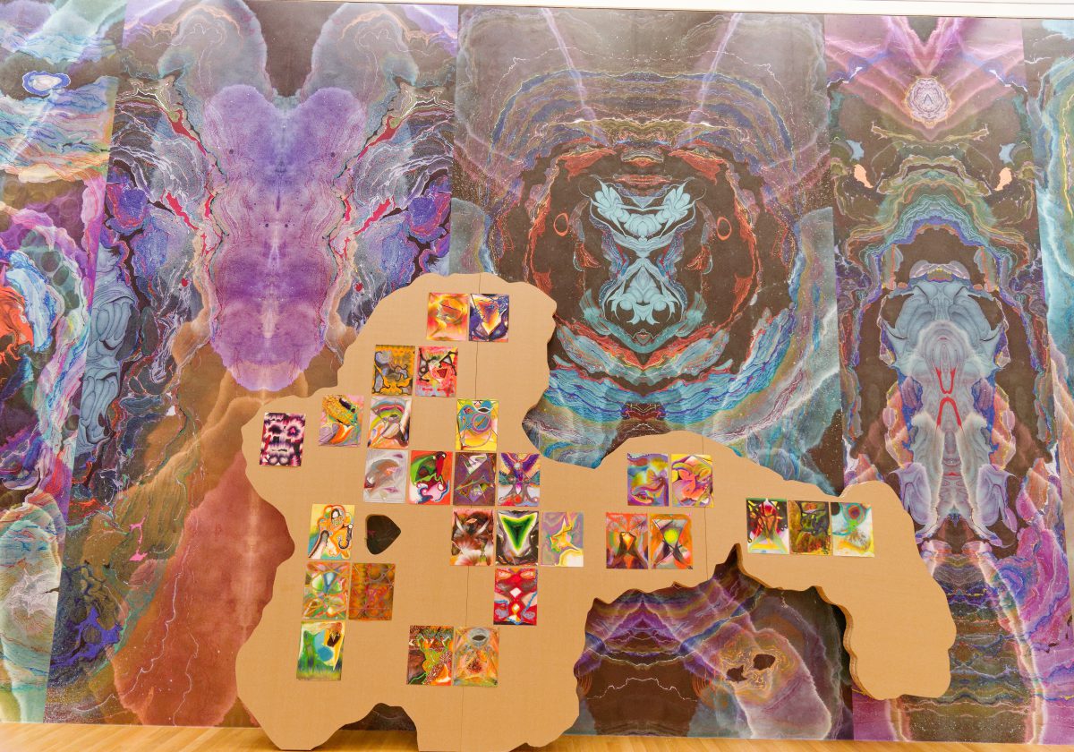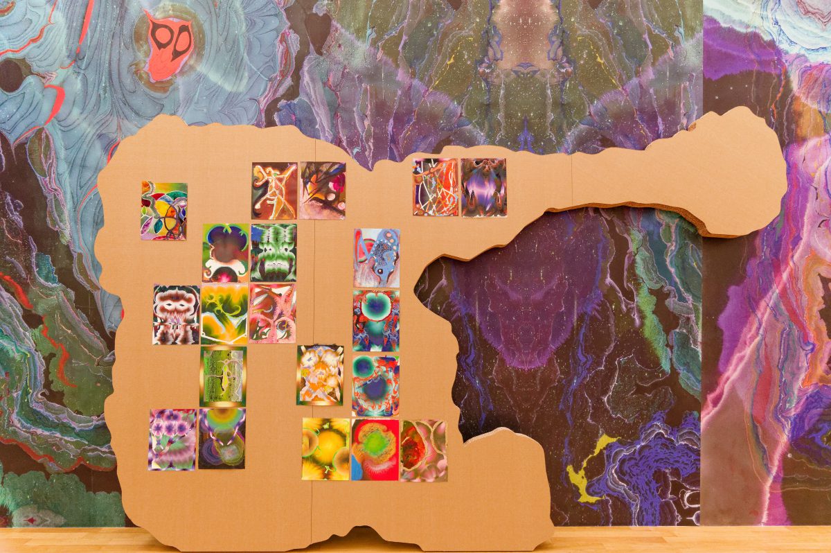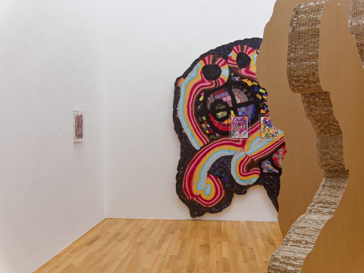 Für die Ausstellung verwandelt Kerstin Brätsch das Kunstmuseum Bonn in einen lebendigen malerischen Organismus. Zentraler Ausgangspunkt ist dabei der Bezug zwischen Malerei und Körper auf physischer, psychischer und sozialer Ebene. Wie ein Portal zu einer anderen Welt durchschreiten die Besuchenden eine Art Labyrinth aus Farbe, Licht und Klängen oder treten vor eine suggestive Tapete mit gespiegelten Motiven, die an die Tintenklecks-Tests des Psychiaters Hermann Rorschach erinnern.