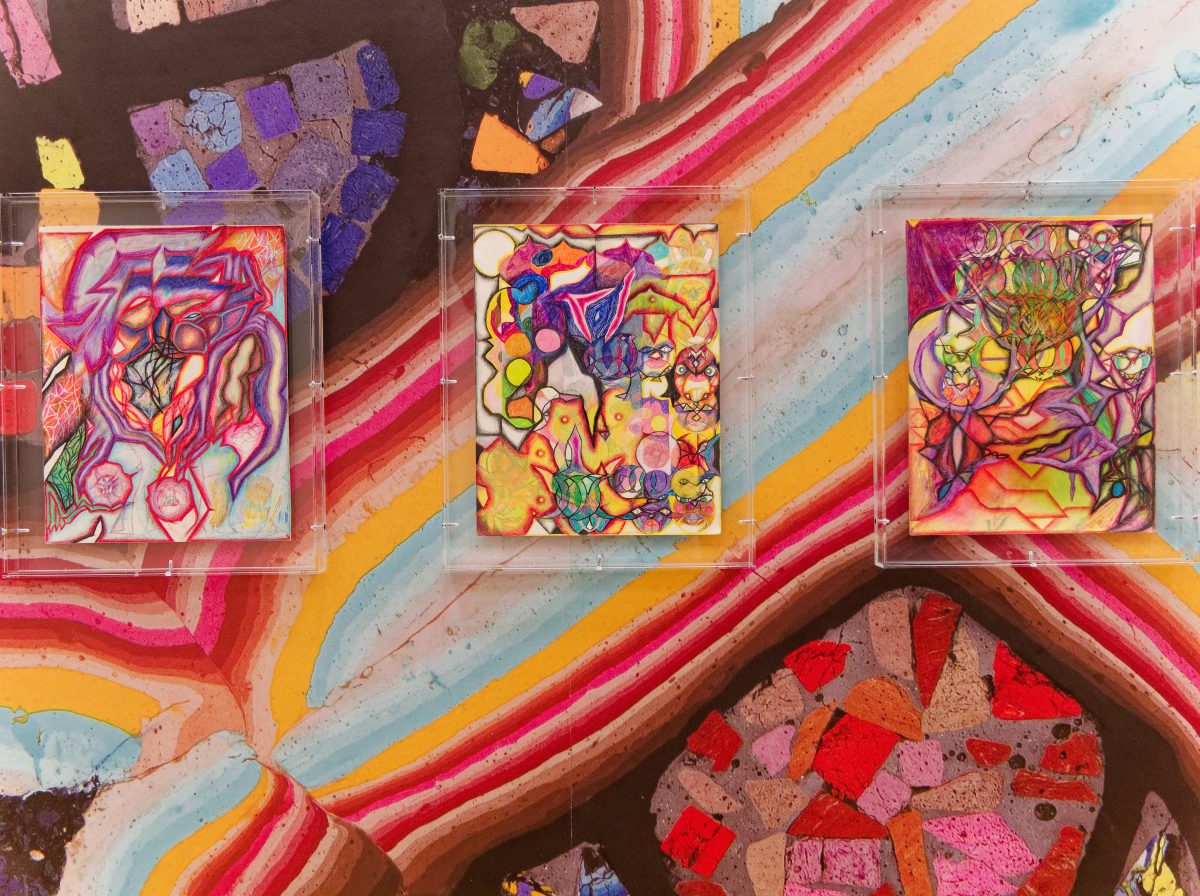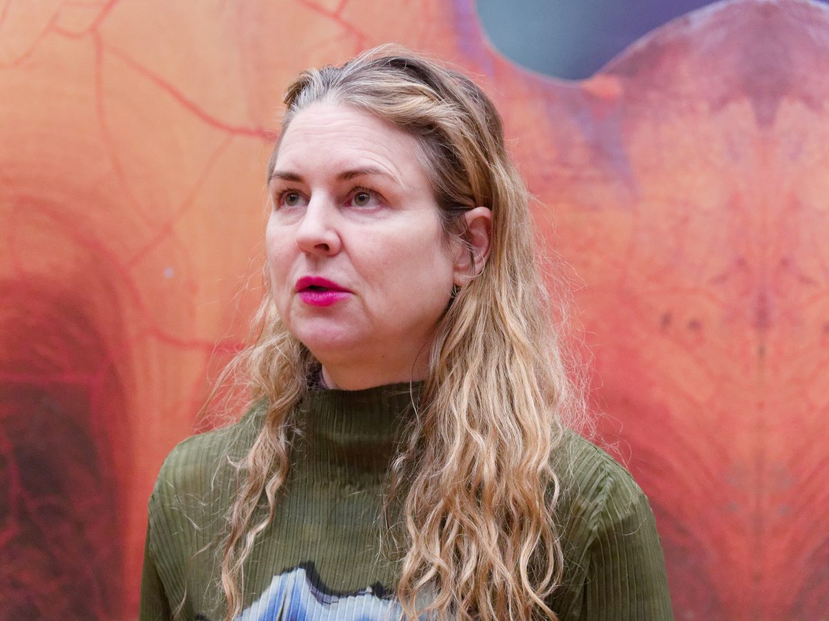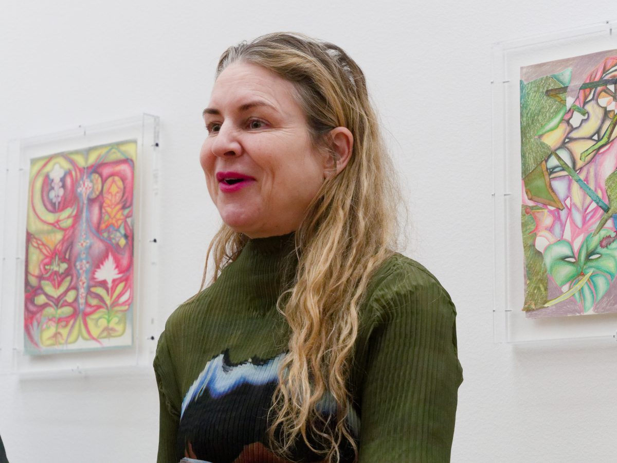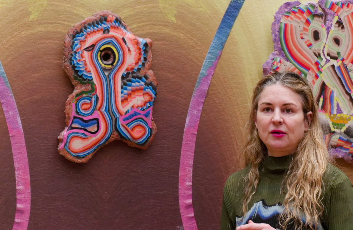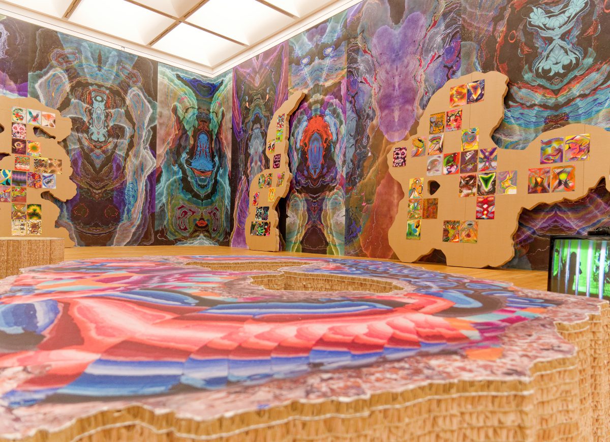 Für die Ausstellung verwandelt Kerstin Brätsch das Kunstmuseum Bonn in einen lebendigen malerischen Organismus. Zentraler Ausgangspunkt ist dabei der Bezug zwischen Malerei und Körper auf physischer, psychischer und sozialer Ebene. Wie ein Portal zu einer anderen Welt durchschreiten die Besuchenden eine Art Labyrinth aus Farbe, Licht und Klängen oder treten vor eine suggestive Tapete mit gespiegelten Motiven, die an die Tintenklecks-Tests des Psychiaters Hermann Rorschach erinnern.