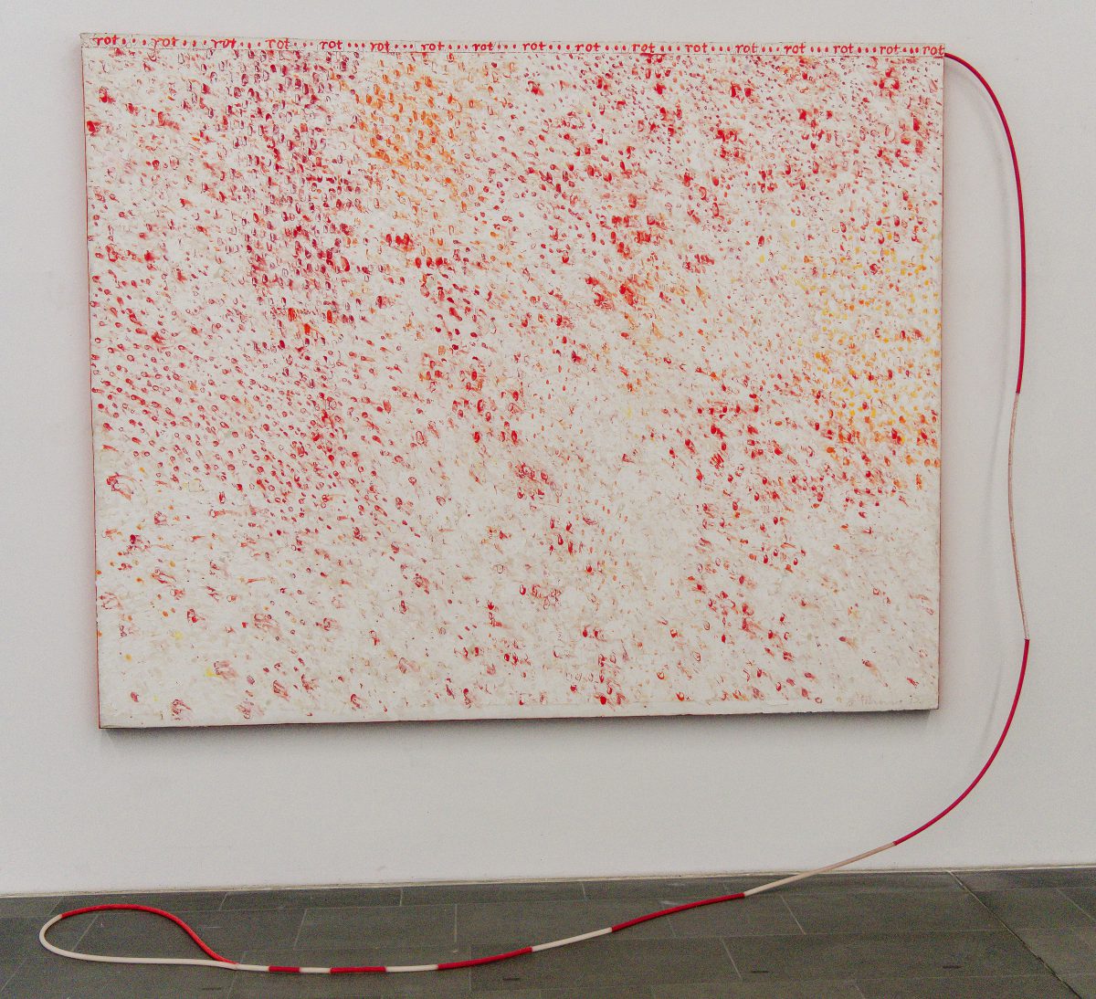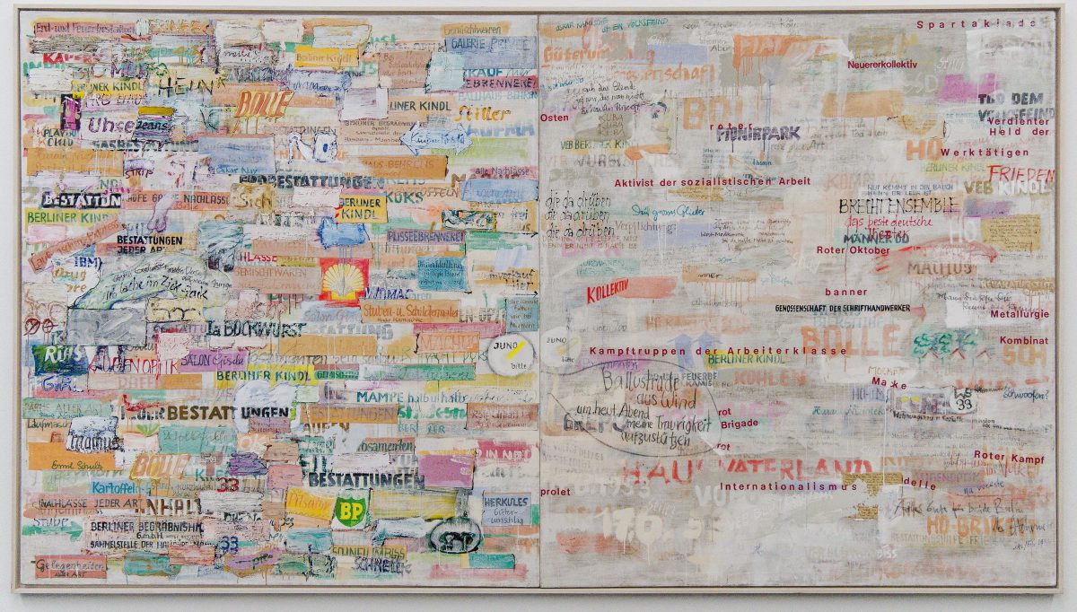 Eine entscheidende Erweiterung seiner künstlerischen Konzeption erfolgte durch den eigenwilligen Umgang mit Handschrift, Sprache und Schrift. Hoehme bezog Texte aus avantgardistischer Lyrik ebenso ein wie politische Kampfbegriffe oder Fragmente aus der Werbesprache. In diesen Arbeiten manifestiert sich früh eine humanistische und demokratische Haltung, die bereits in den 1960er- Jahren die Vision eines ungeteilten Deutschlands formulierte — eine Entwicklung, deren Verwirklichung im November 1989 der Künstler selbst nicht mehr erleben konnte.