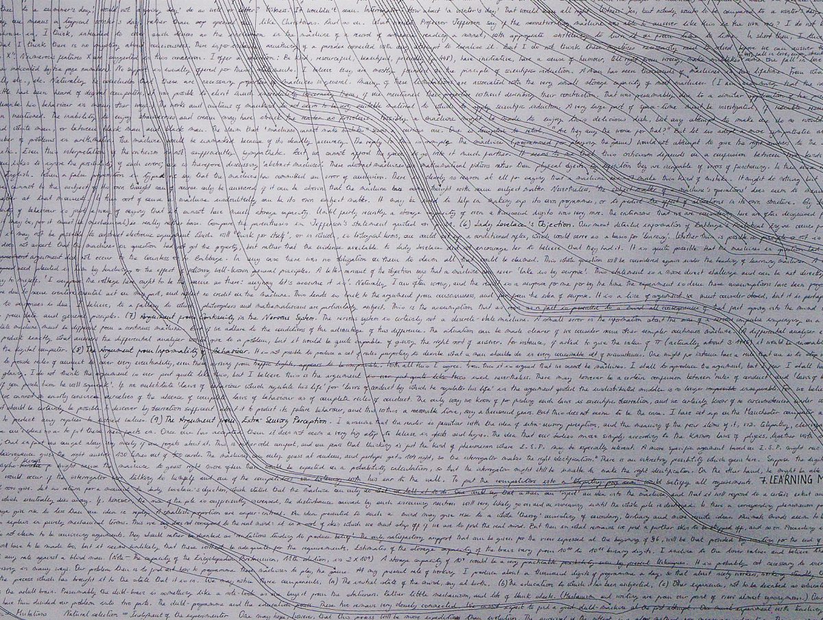 Die Ausstellung begibt sich anhand von Gemälden, Papierarbeiten, Skulpturen und Videoarbeiten in den ineinander übergreifenden Themenfeldern Architektur, Zeit, Körper und Traum auf die Suche nach Aspekten, die helfen können, das Verhältnis von Mensch und Zukunft zu beleuchten.