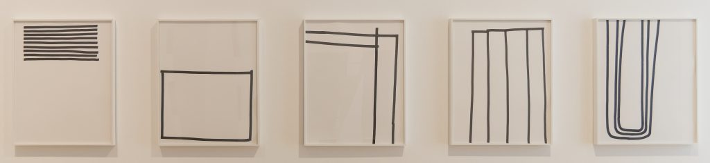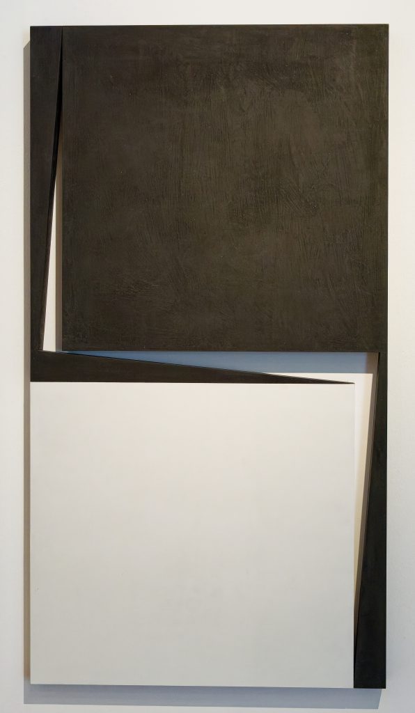 Im 2. Obergeschoss rücken schwarz-weiße Werke zum Abschluss der Ausstellung die Linie als gestaltendes Element in den Blick. John Carter und Nakajima Osamu arbeiten mit scharfen Kanten und offenen Zwischenräumen, die ihre kompakten Holz- und Marmorobjekte massgeblich mitgestalten.
