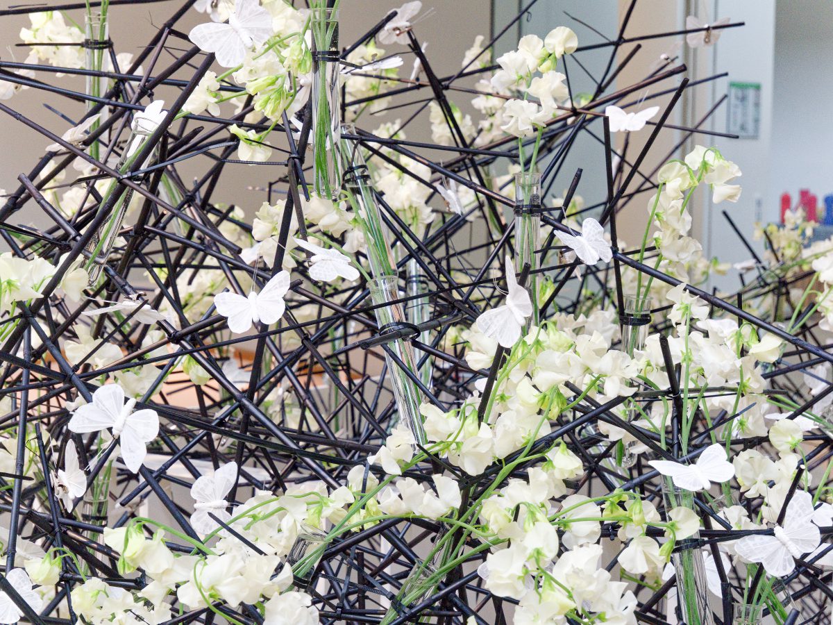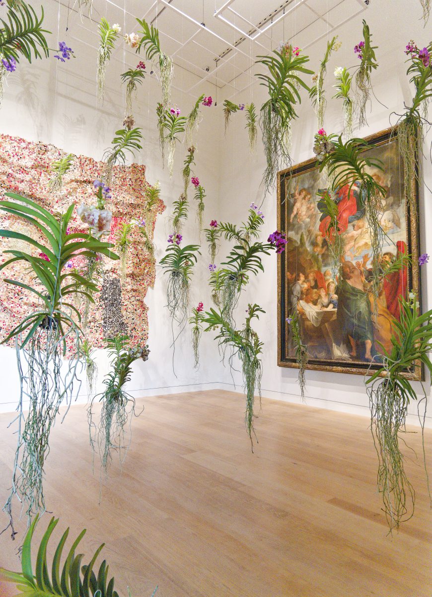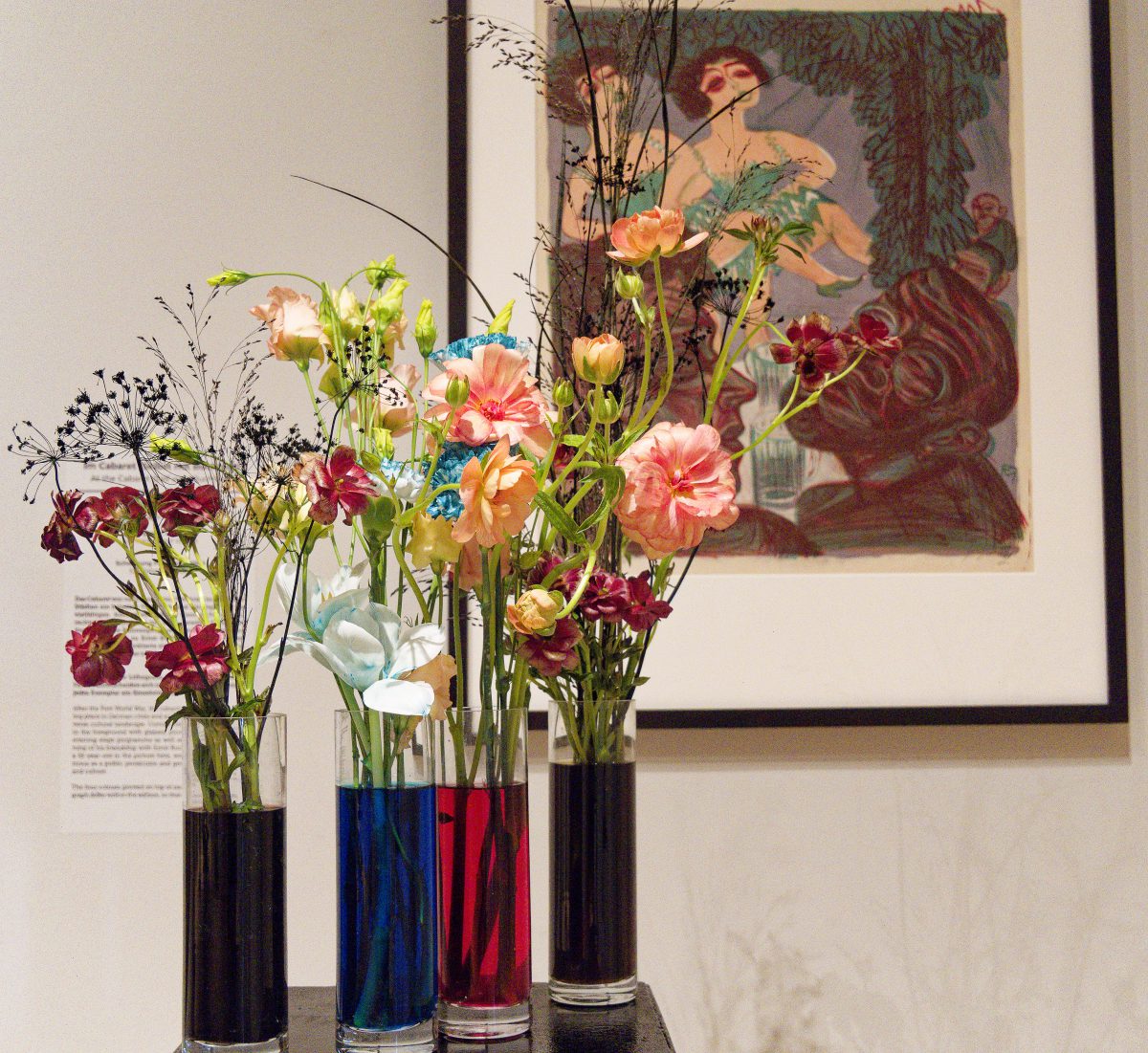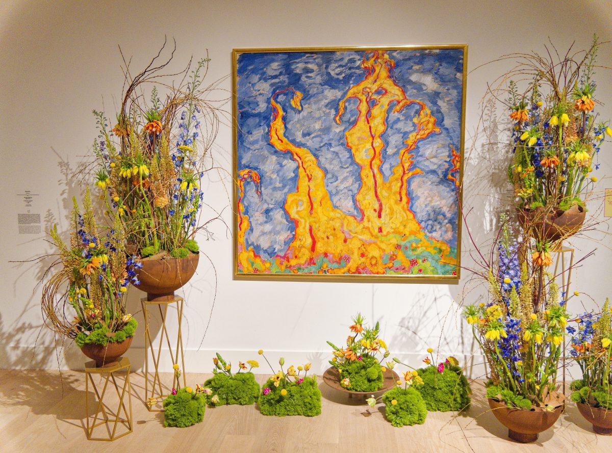 Rund 30 florale Kreationen sind neben den im Rundgang ausgestellten Objekten — naturgemäß nur für kurze Zeit – zu sehen und schaffen sowohl visuell als auch olfaktorisch besondere Sinneseindrücke. Acht renommierte Florist*innen folgen der Einladung des Kunstpalastes, sich mit der Sammlung auseinanderzusetzen und Interpretationen zu entwickeln, die sich auf einzelne Werke oder ganze Räume des Rundgangs beziehen.