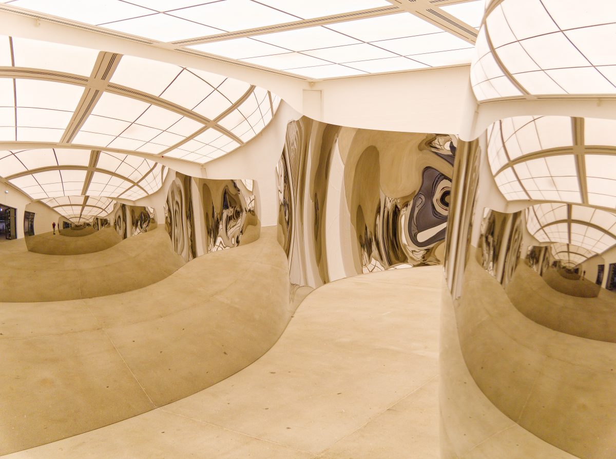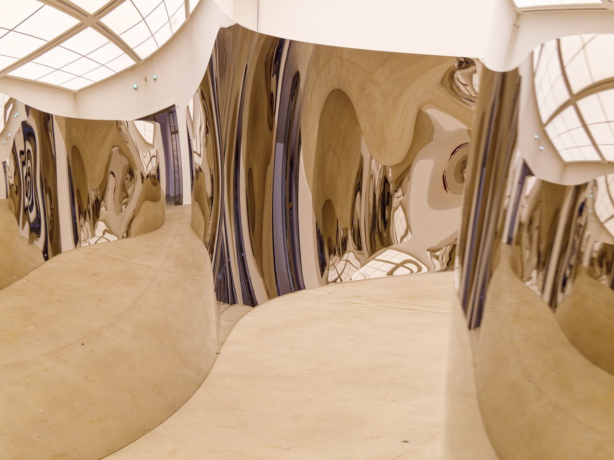 In der Ausstellung im Lehmbruck Museum begegnen Besucherinnen und Besucher eindrucksvollen Arbeiten wie Past, Present, Future – einer über 3 Meter hohen, kugelförmigen Arbeit aus tiefrotem Wachs –, einem beinahe 15 Meter langen, spiegelnden Korridor in Form der Double S-Curve sowie den illusionistischen Werken Non-Object Black, deren tiefschwarzes Pigment (Vantablack) den Blick förmlich in sich hineinzieht. Die Skulpturen Kapoors sind keine rein statischen Objekte, sondern immersive Erfahrungsräume, die uns berühren, erstaunen und verändern. Er schafft es mit seiner Kunst, Komplexität, feine Nuancen und vielfältige Perspektiven zu vereinen und dabei die Fragilität des menschlichen Seins zu thematisieren. Anish Kapoors Werk besticht durch die Versöhnung von vermeintlichen Gegensätzen: außen und innen, dunkel und hell, materiell und immateriell.